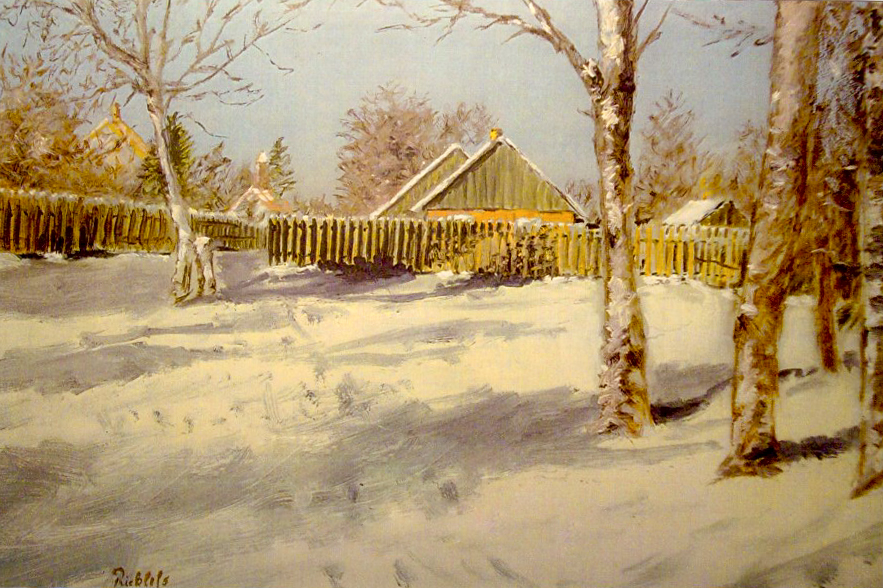 Opa Behrmann malt seinen Zaun. 70x50